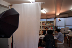 (オフィスでの取材風景)